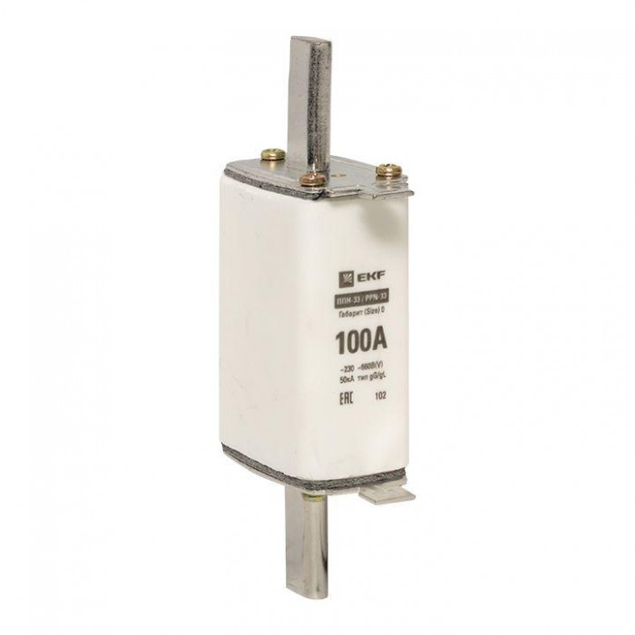Плавкая вставка ППН-33 160/100А габарит 0 EKF. Предохранители плавкие ППН EKF, укомплектованные плавкими вставками типа gG/gL, предназначаются для защиты кабельных линий и промышленных электроустановок от токов перегрузки и короткого замыкания. Предохранители применяются в электрических сетях переменного тока частотой 50 Гц с напряжением до 660В. Применяются для крепления в распределительных и вводно-распределительных устройствах. Предохранители плавкие ППН могут устанавливаться в основание с держателем, а также в специально предназначенные рубильники. В комплект поставки предохранителей плавких ППН основание с держателем не входит и приобретается отдельно.