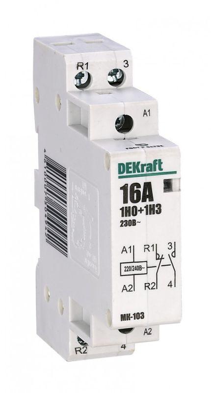 Модульный контактор серии МК-103 Dekraft; ном.ток 16 А (АС-7а); кол-во и исполнение контактов – 1НО+..