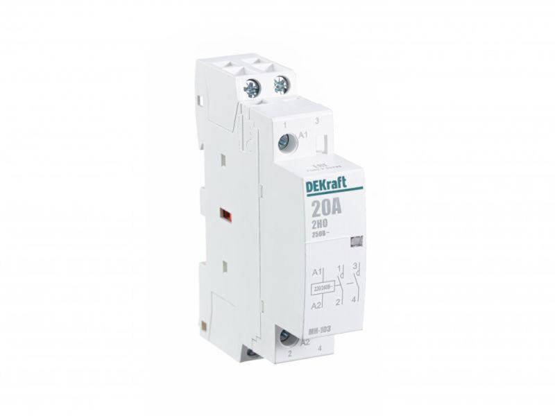 Модульный контактор серии МК-103 Dekraft; ном.ток 20 А (АС-7а); кол-во и исполнение контактов – 2НО;..