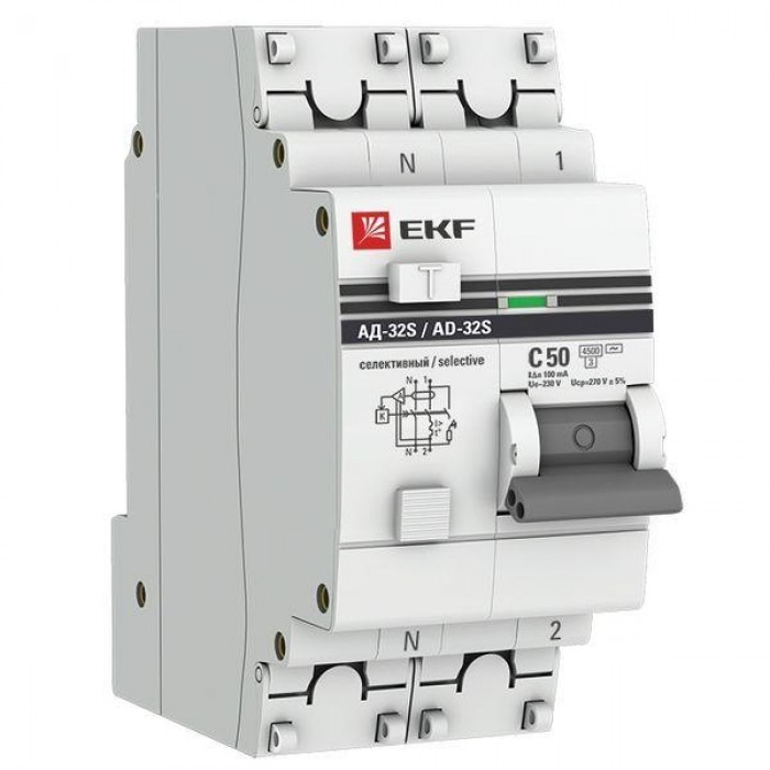 Выключатель автоматический дифференциального тока 2п (1P+N) 50А 100мА АД-32 селект. PROxima EKF DA32-50-100S-pro