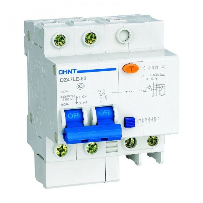 Выключатель автоматический дифференциального тока 2п C 40А 30мА тип AC 6кА DZ47LE-63 CHINT 199657