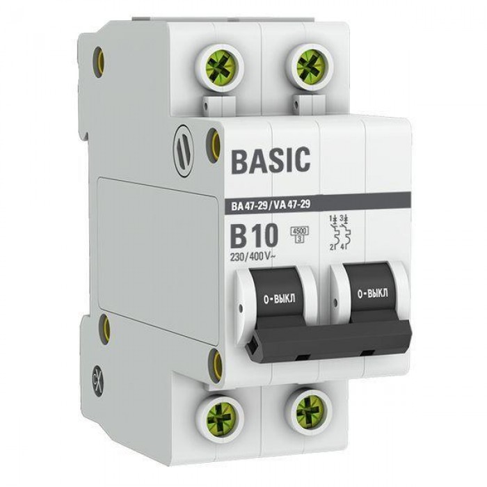Выключатель автоматический модульный 2п B 10А 4.5кА ВА 47-29 Basic EKF mcb4729-2-10-B