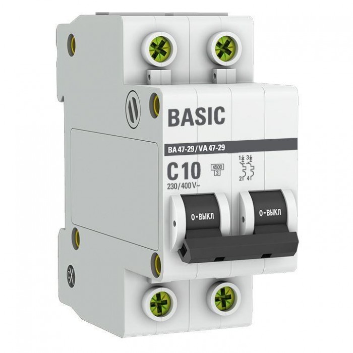 Выключатель автоматический модульный 2п C 10А 4.5кА ВА 47-29 Basic EKF mcb4729-2-10C
