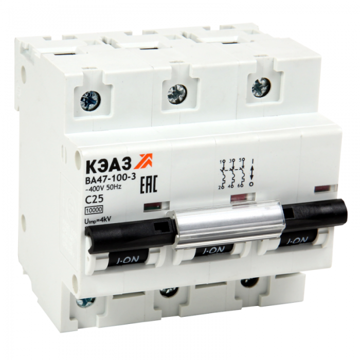 Выключатель автоматический модульный 3п C 100А 10кА ВА47-100-3C100-УХЛ3 КЭАЗ 318137