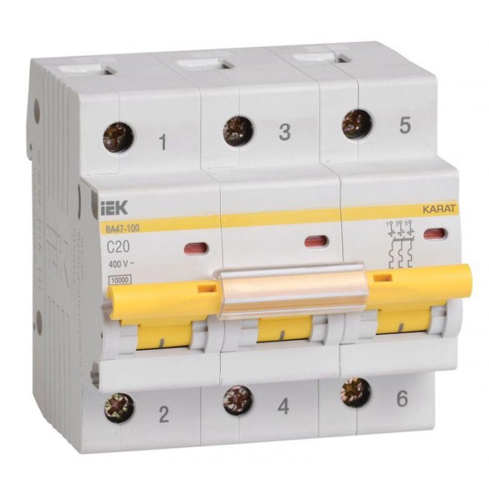 Выключатель автоматический модульный 3п C 20А 10кА ВА47-100 KARAT IEK MVA40-3-020-C