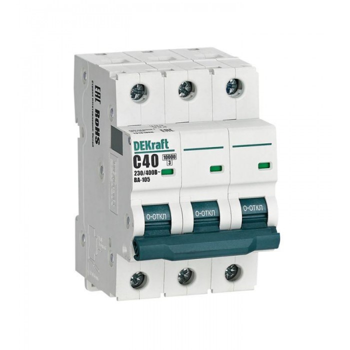 Автоматический выключатель серии ВА-105 Dekraft; 3P; ном. ток 40 А; характеристика C; откл. способность 10 кА; ширина модуля 18мм. Аппараты имеют механизм мгновенной коммутации, 6 монолитных заклепок, которые повышают пр...