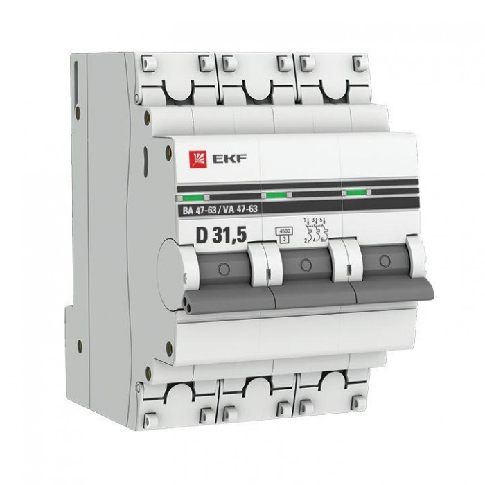 Выключатель автоматический модульный 3п D 31.5А 4.5кА ВА 47-63 PROxima EKF mcb4763-3-31.5D-pro