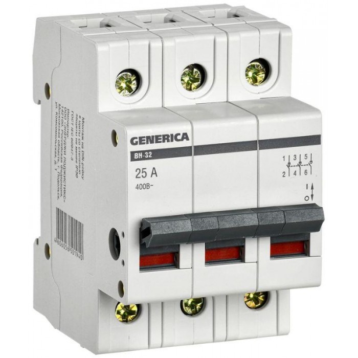 Выключатель нагрузки (мини-рубильник) 3п 25А ВН-32 GENERICA MNV15-3-025