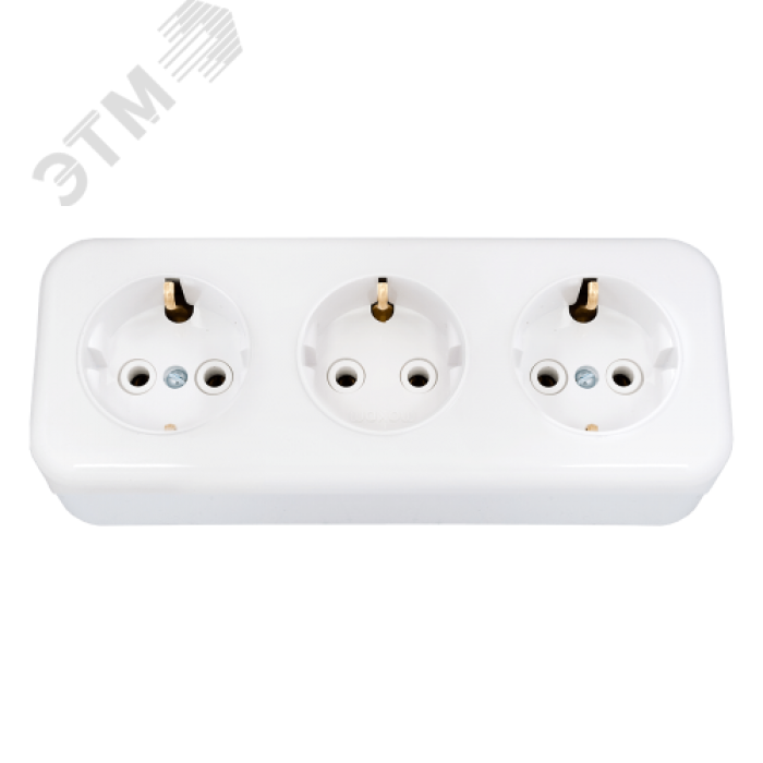 Розетка трехместная с заземляющим контактом открытой установки, предназначена для присоединения электрических приемников с номинальным напряжением 250 В к электрической сети переменного тока. В качестве материала для про...