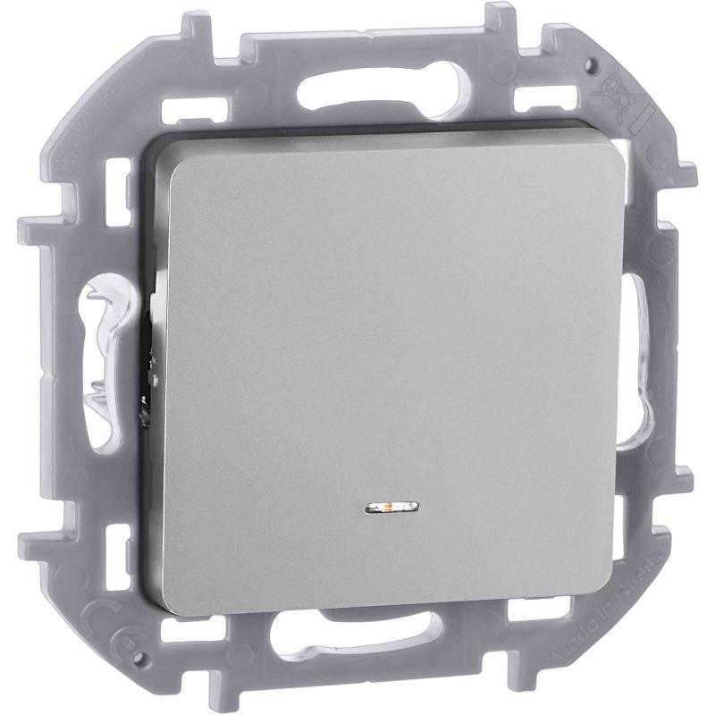 Переключатель одноклавишный с подсветкой/индикацией скрытого монтажа Inspiria, цвет "Алюминий", номи..
