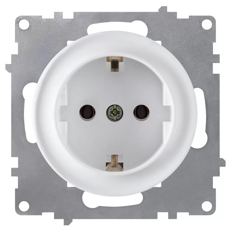 Розетка с заземлением и защитными шторками ETIKA для скрытого монтажа. Применяется в зданиях, оборуд..