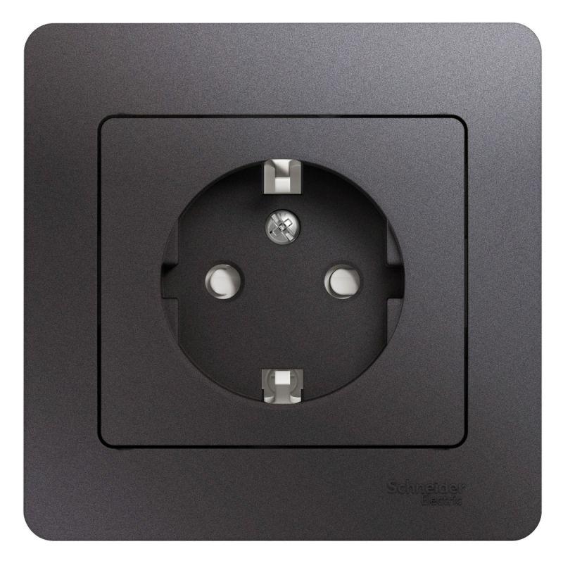 Розетка Systeme Electric (ранее Schneider Electric) серии Glossa (в сборе, цвет графит) одинарная бе..