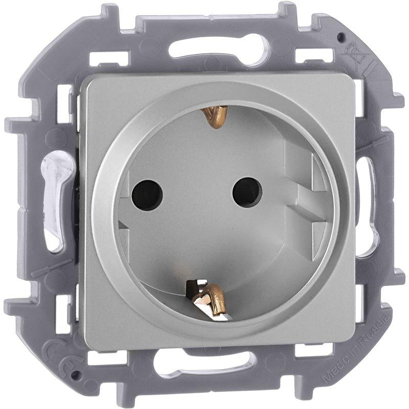 Розетка с заземлением для скрытого монтажа Inspiria, цвет "Алюминий", максимальный ток 16А, напряжен..