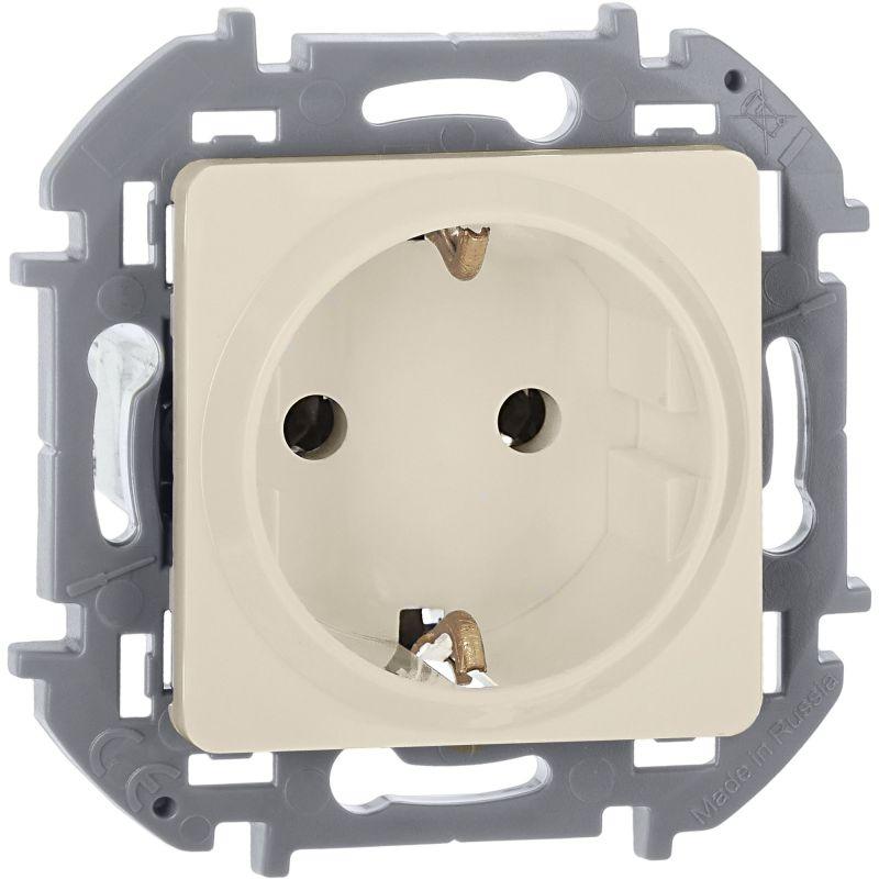 Розетка с заземлением для скрытого монтажа Inspiria, цвет "Слоновая кость", максимальный ток 16А, на..