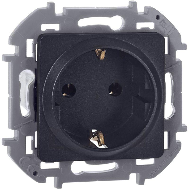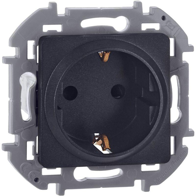 Розетка с заземлением для скрытого монтажа Inspiria, цвет "Антрацит", максимальный ток 16А, напряжен..