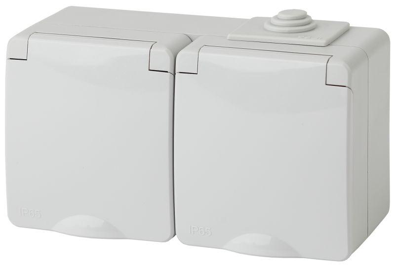 Розетка двойная горизонтальная IP65 с крышкой серии Эра Эксперт открытой установки цвет белый 11-260..