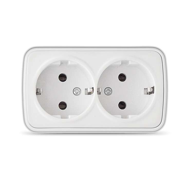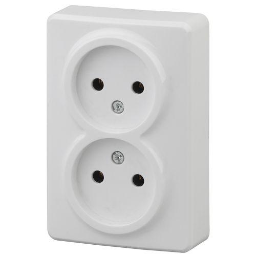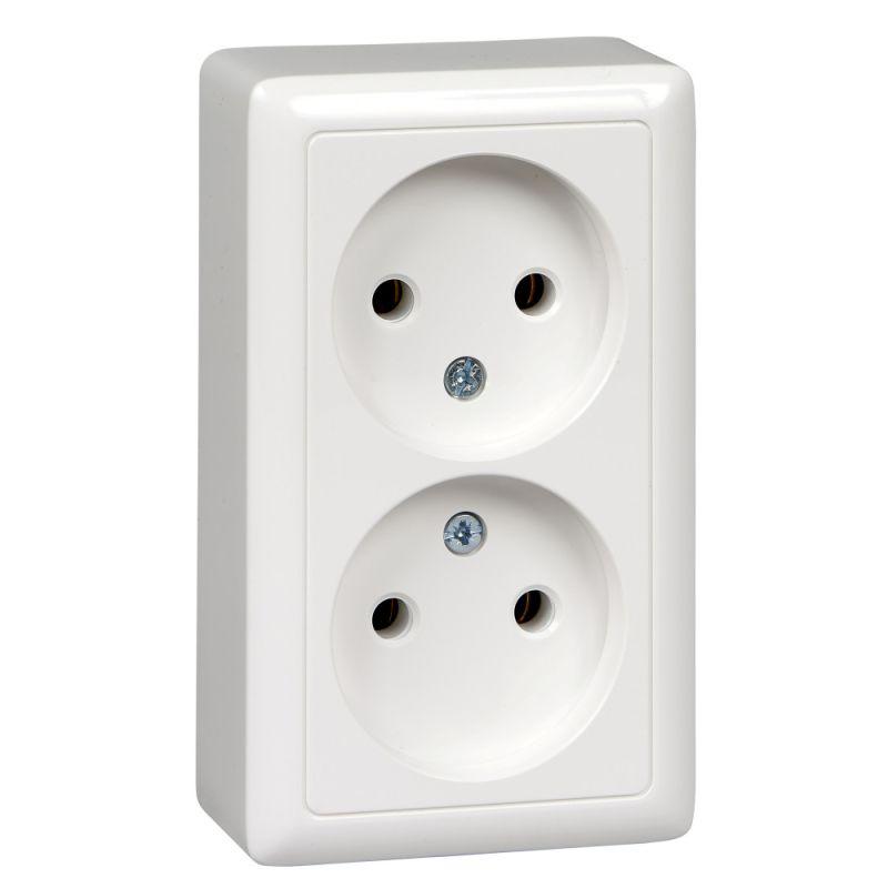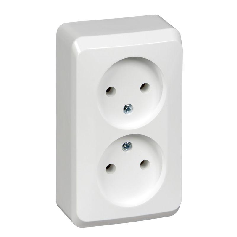 Розетка Systeme Electric (ранее Schneider Electric) ЭТЮД (белый, открытой установки) двухместная, бе..