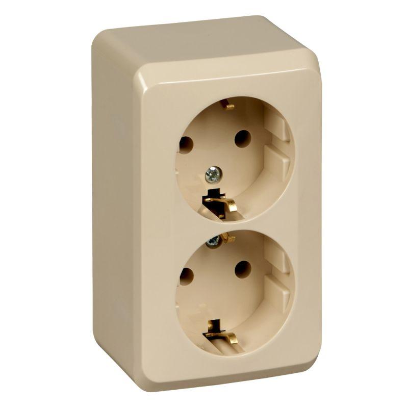 Розетка Systeme Electric (ранее Schneider Electric) ЭТЮД (кремовый, открытой установки) двухместная ..