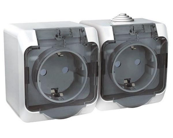 Розетка Systeme Electric (ранее Schneider Electric) ЭТЮД (серый, открытой установки) двухместная с з..
