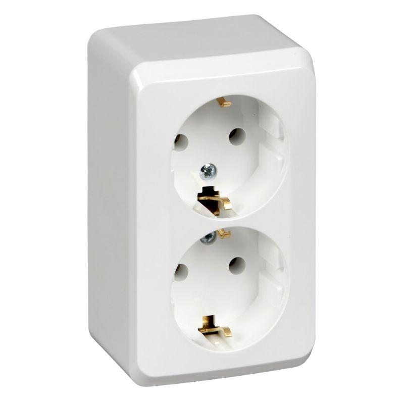 Розетка Systeme Electric (ранее Schneider Electric) ЭТЮД (белый, открытой установки) двухместная с з..