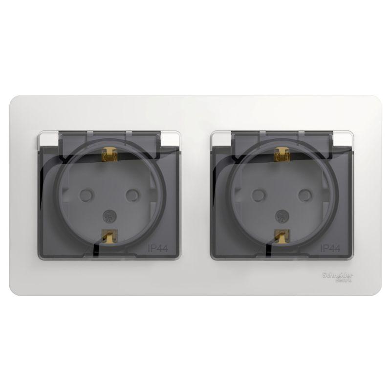 Розетка Systeme Electric (ранее Schneider Electric) серии Glossa (в сборе, цвет белый) двойная с заз..