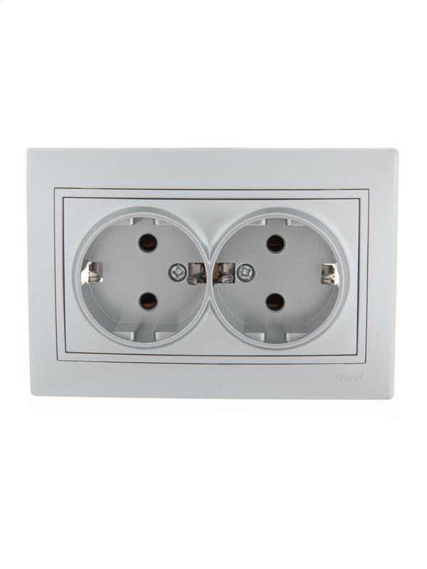 Розетка 2-м СП Мира керам. с заземл. бел./сер. Lezard 701-0215-127 для скрытой установки сочетает в ..