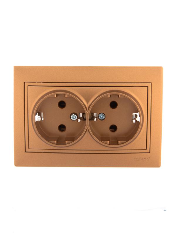 Розетка 2-м СП Мира керам. с заземл. метал. зол. Lezard 701-1313-127 для скрытой установки сочетает ..