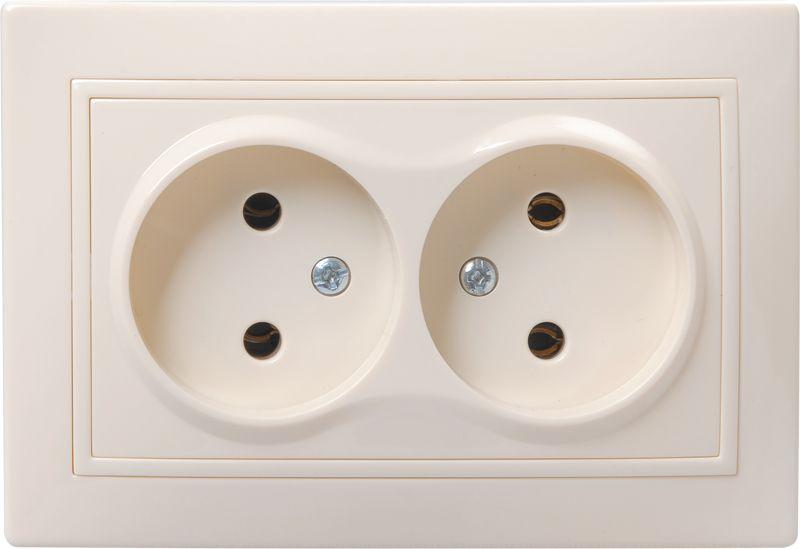 Розетка двойная EKF серии Минск без заземления, со шторками станет отличным решением для квартиры и ..