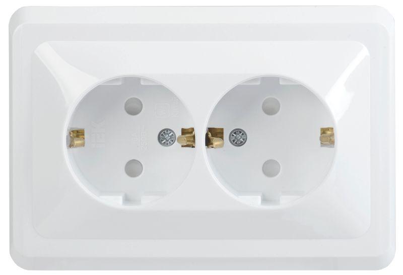 Розетка двойная с крышкой EKF серии Минск с заземлением, со шторками и крышкой станет отличным решен..