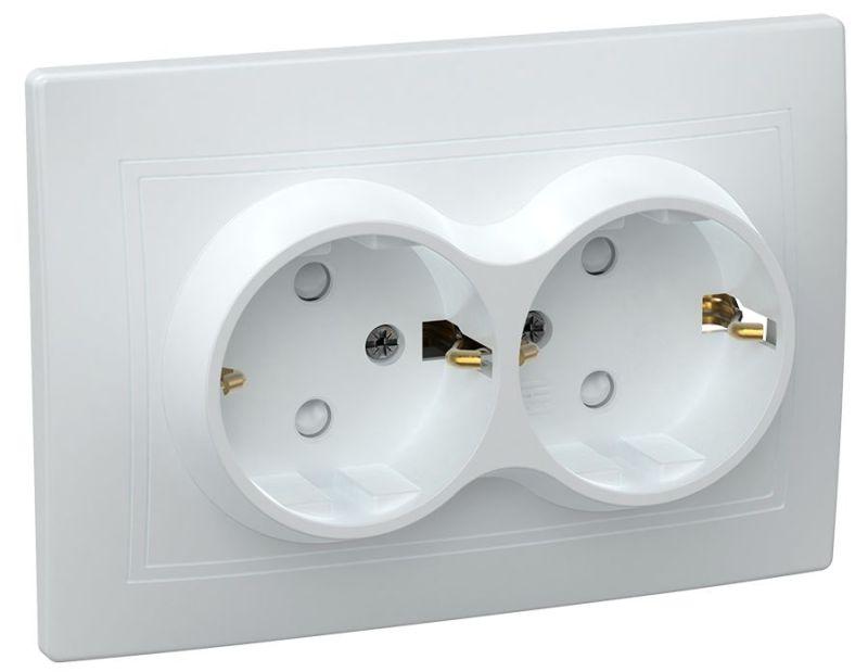 Розетка двойная EKF серии Минск с заземлением и со шторками станет отличным решением для квартиры и ..