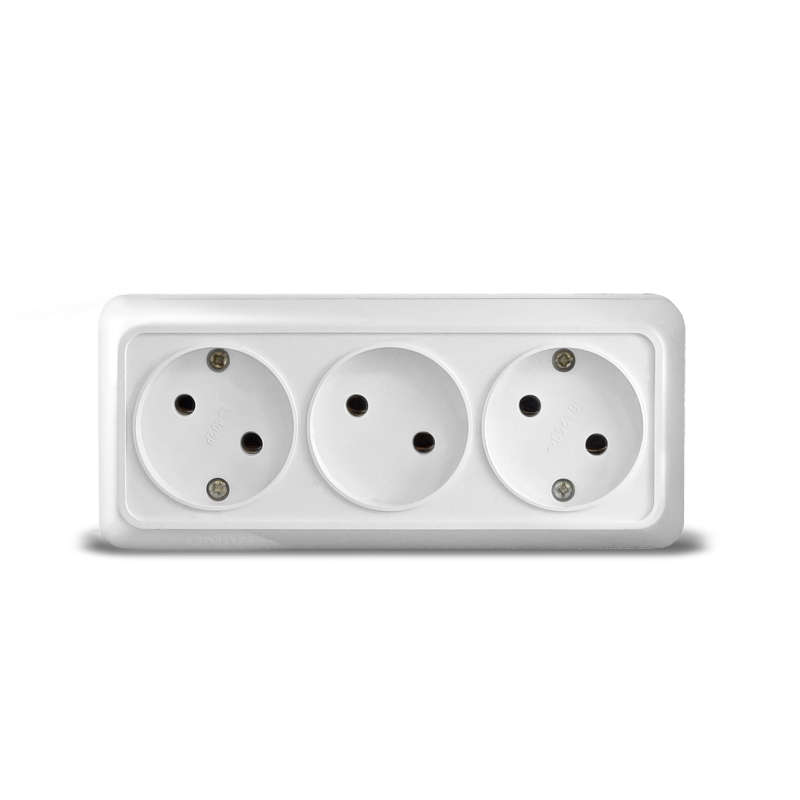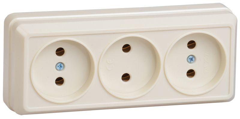 Розетка тройная IP54 3-я серии Эра Эксперт открытой установки цвет серый 11-2405-03. Номинальные хар..
