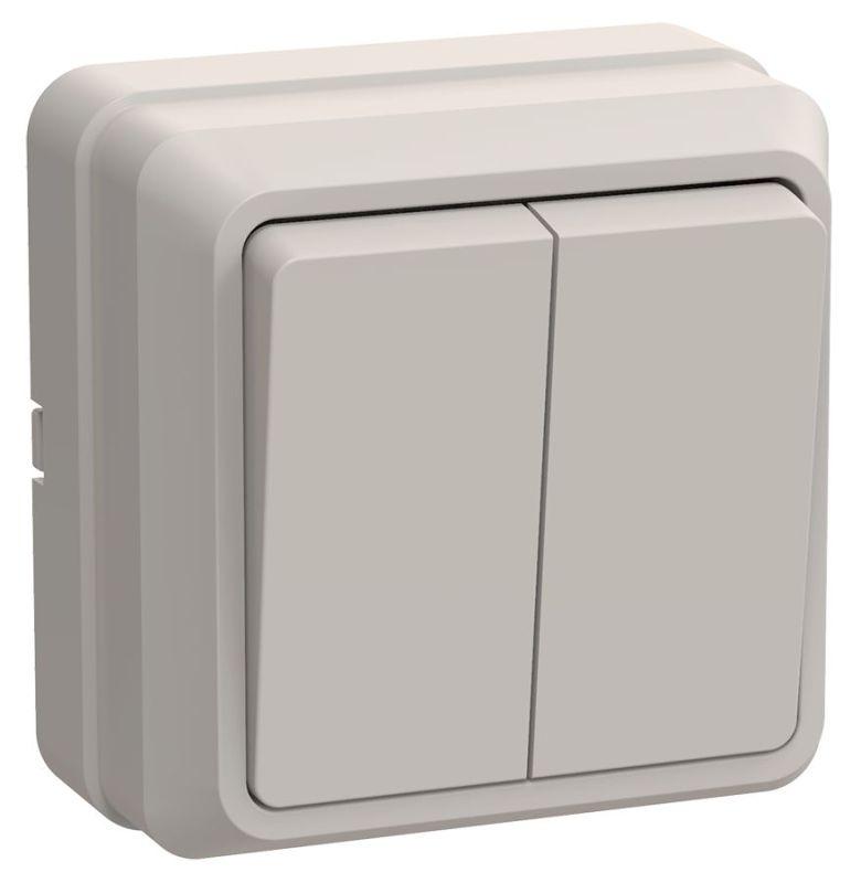 Выключатель 2-кл. ОП Клио 10А IP44 сер. UNIVersal К2223-Gr 1842704..