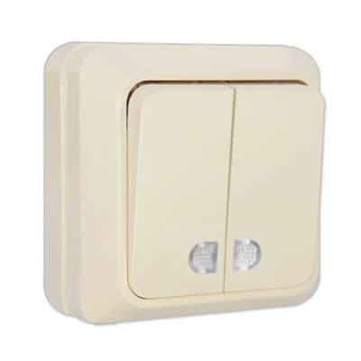 Выключатель 2-кл. ОП Олимп 10А IP20 с подсветкой сосна UNIVersal 5560841 315923..