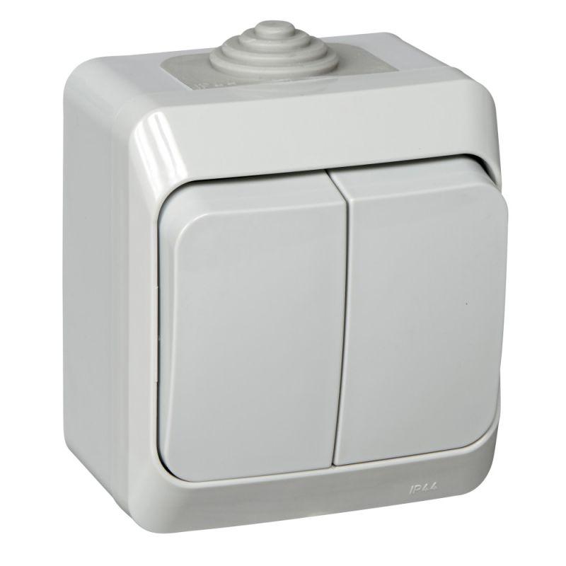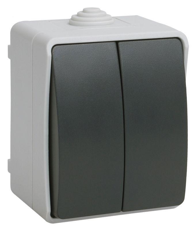 Выключатель влагозащищённый IP54 2-клавишный серии Эра Эксперт открытой уст. цвет серый 11-1404-03. ..