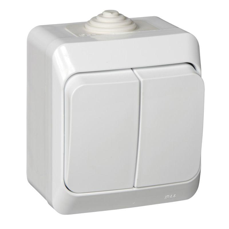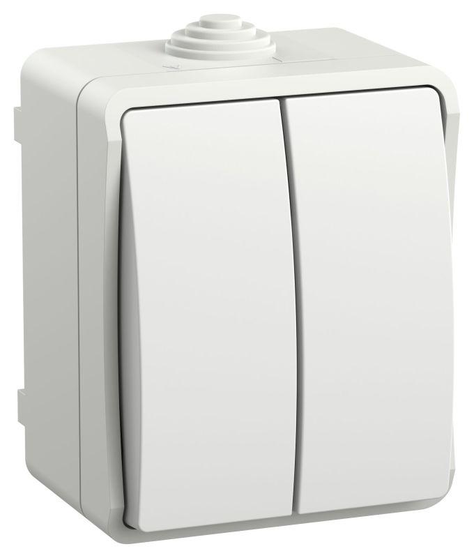 Выключатель двухклавишный Systeme Electric (ранее Schneider Electric) РОНДО (открытой установки, цве..