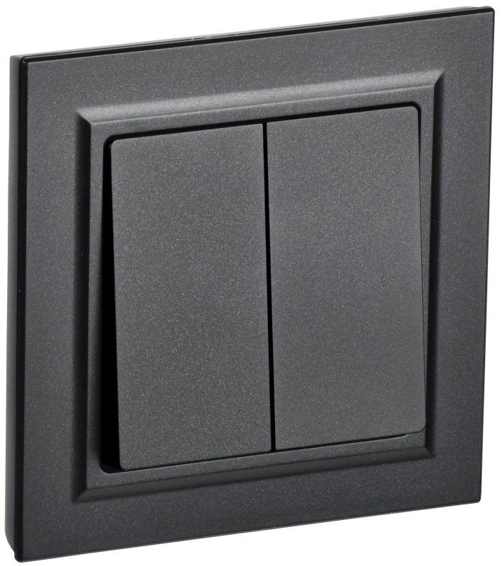 Выключатель 2-клавишный Эра Elegance антрацит 14-1104-05. Оснащён автоматическими клеммами для надёж..