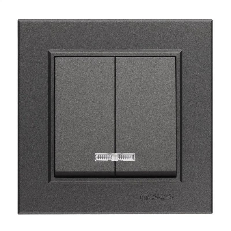 Выключатель 2-кл. СП Karea 10А IP20 дым. металлик с подсветкой Makel 56050023 1589878..