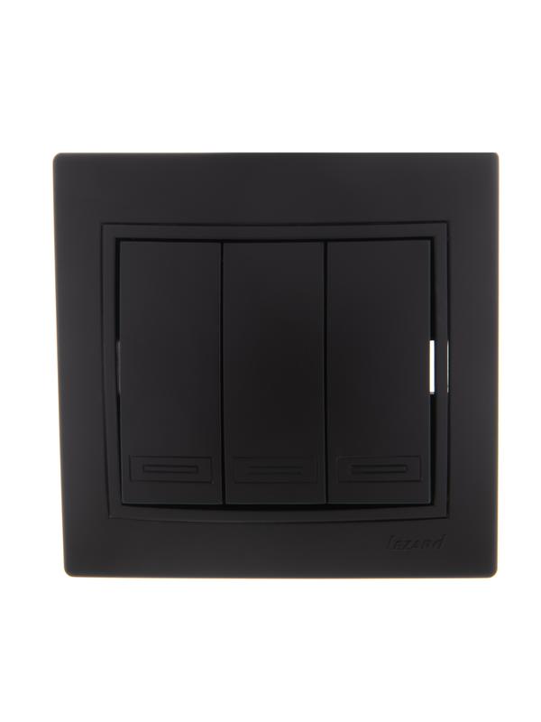 Выключатель 3-кл. 1п СП Mira 10А IP20 со вставкой черн. бархат LEZARD 701-4242-109 537307..