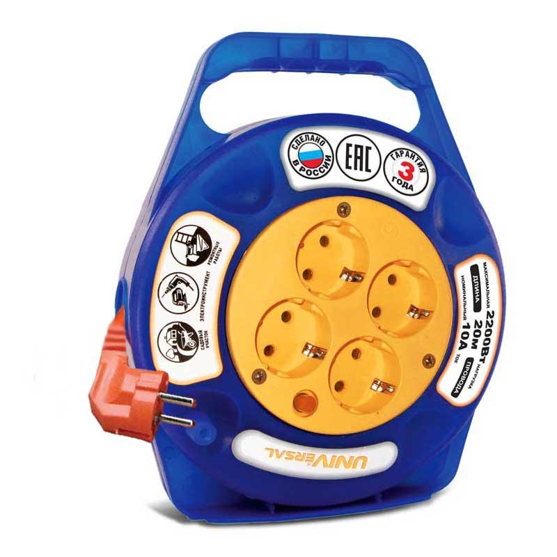 Удлинитель в закрыт. корпусе 4х20м с заземл. 6А IP20 У10-015 ПВС 3х0.75 термозащита защ. шторки UNIV..