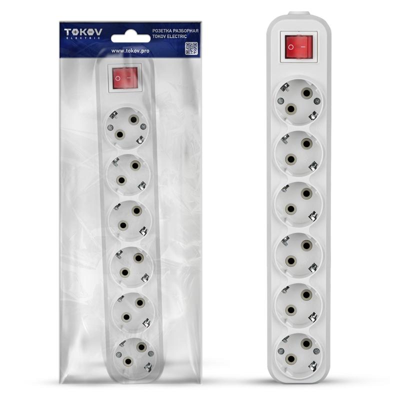 Колодка удлинителя 6-м 16А с заземл. с выкл. АБС-пластик бел. TOKOV ELECTRIC TKE-C01-KU6-ZV 1685667..