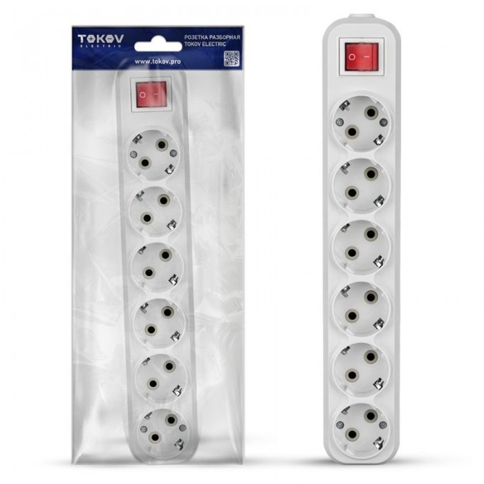 Колодка удлинителя 6-м 16А с заземл. с выкл. АБС-пластик бел. TOKOV ELECTRIC TKE-C01-KU6-ZV
