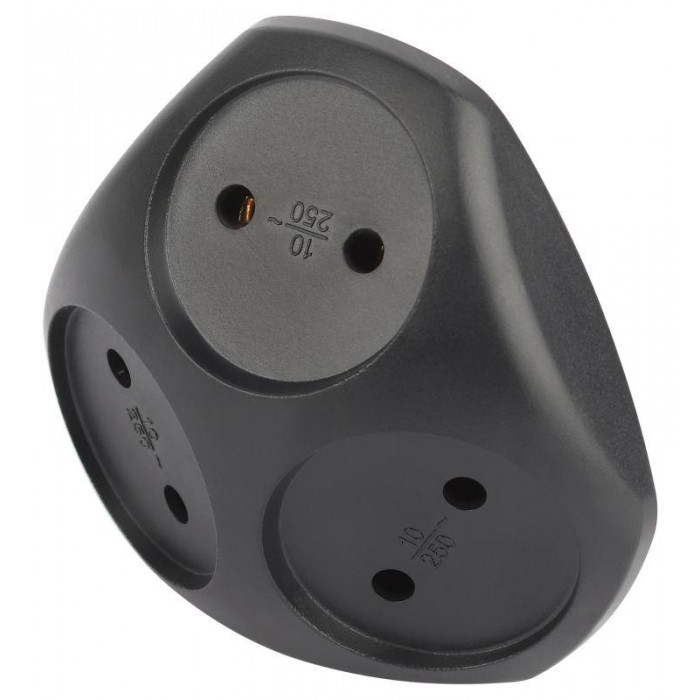 Сетевой разветвитель (тройник) ЭРА SPx-3-B на 3 розетки, без заземления. Цвет-черный. Максимальная мощность - 10А/2200 Вт, материал корпуса - полипропилен (пластик премиум сегмента). Эксклюзивный продакт-дизайн.
