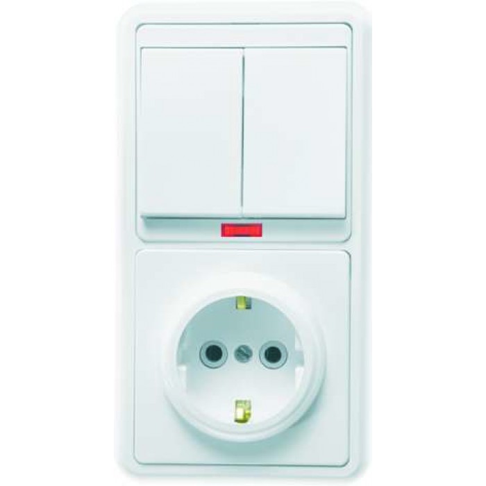 Блок БКВР-055 Бэлла (2-кл. выкл. с инд. + розетка с заземл.) бел. Кунцево 5833