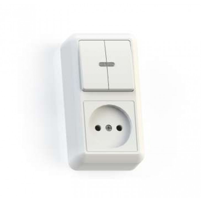 Блок комбинированный ОП БКВР-431 Оптима (2-кл. выкл. с подсветкой + розетка) бел. Кунцево 8063