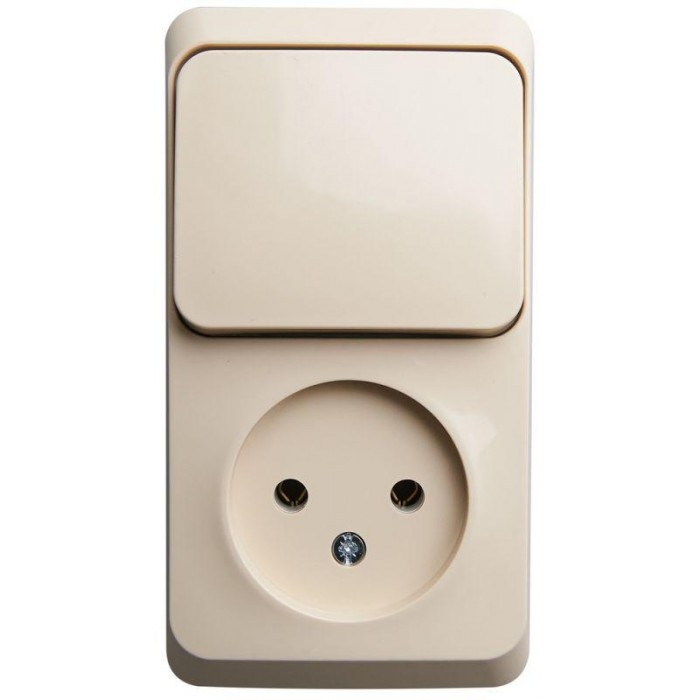 Блок Systeme Electric (ранее Schneider Electric) ЭТЮД (кремовый, открытой установки) предназначен для применения в сетях до 250В, состоит из розетки без заземления, без шторок на 16А, и одноклавишного выключателя на 10А. Он удобен в применении и отлично подходит для коридора. Заземление обеспечивает безопасность при косвенном прикосновении. Сделано в России.
