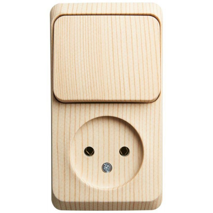 Блок Systeme Electric (ранее Schneider Electric) ЭТЮД (сосна, открытой установки) предназначен для применения в сетях до 250В, состоит из розетки без заземления, без шторок на 16А, и одноклавишного выключателя на 10А. Он удобен в применении и отлично подходит для коридора. Заземление обеспечивает безопасность при косвенном прикосновении. Изделия цвета Сосна обладают уникальным рисунком, напоминающим древесный сруб. Сделано в России.