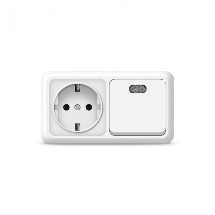 Блок ОП Олимп 1-кл. вык. с подсветкой + роз. с заземл. горизонт. бел. UNIVersal О0036 представлен потребителю в серии "Олимп". Серия "Олимп" для открытой установки сочетает в себе функциональность с практичностью. Изделия данной серии удачно вписываются в интерьер любого помещения и производят приятное впечатление. Блок объединяет одноклавишный выключатель и розетку. Корпус представляет собой форму из пластика, белого цвета. Контактная группа изделий изготовлена из латуни. Монтируется горизонтально, на глубину 48 мм, на поверхность стены. Рекомендованы для жилых помещений и административных зданий. Срок службы составляет 5 000 циклов включения/отключения.
