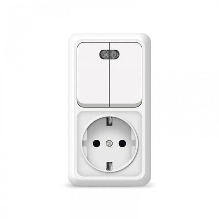 Блок ОП Олимп 2-кл. вык. с подсветкой + роз. с заземл. верт. бел. UNIVersal О0041 представлен потребителю в серии "Олимп". Серия "Олимп" для открытой установки сочетает в себе функциональность с практичностью. Изделия данной серии удачно вписываются в интерьер любого помещения и производят приятное впечатление. Блок объединяет двухклавишный выключатель и розетку. Корпус представляет собой форму из пластика, белого цвета. Контактная группа изделий изготовлена из латуни. Монтируется вертикально, на глубину 48 мм, на поверхность стены. Рекомендованы для жилых помещений и административных зданий. Срок службы составляет 5 000 циклов включения/отключения.