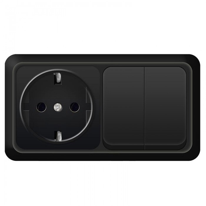 Блок ОП Олимп 2-кл. выкл. 10А + роз. с заземл. 16А 220В горизонт. черн. Universal 7946810