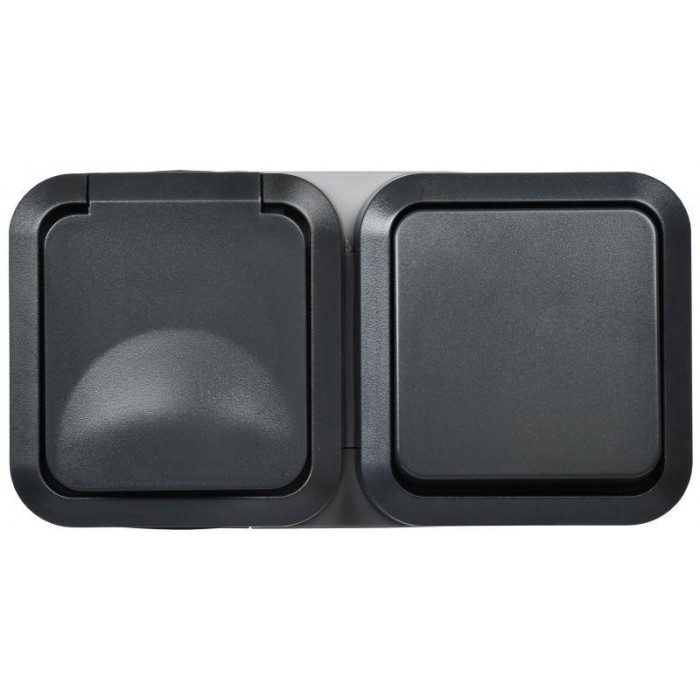Блок ОП розетка + выключ. горизонт. TORS 16А IP55 TS142 графит IEK TS-G10-6-55-V-K53